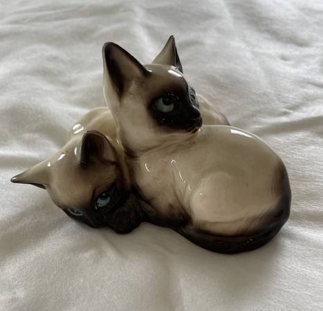 Vintage Bestwick #1296 Huddled Siamese Kittens, handmade sculpture from England. 4½ x 4 x 3. In original box.