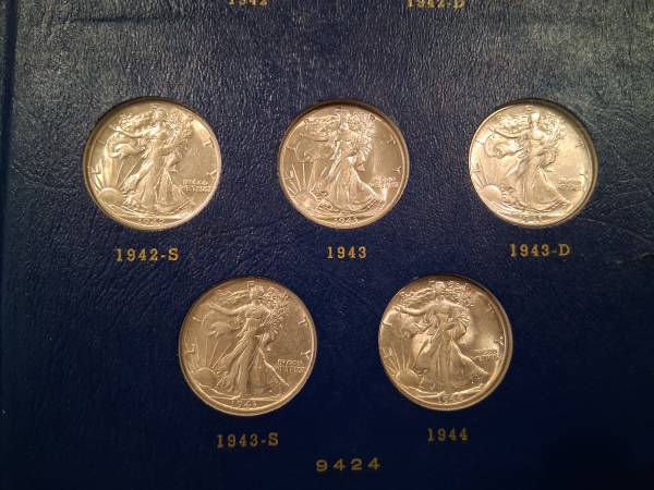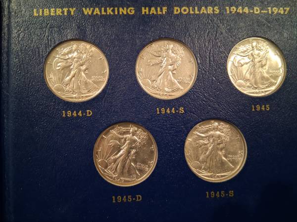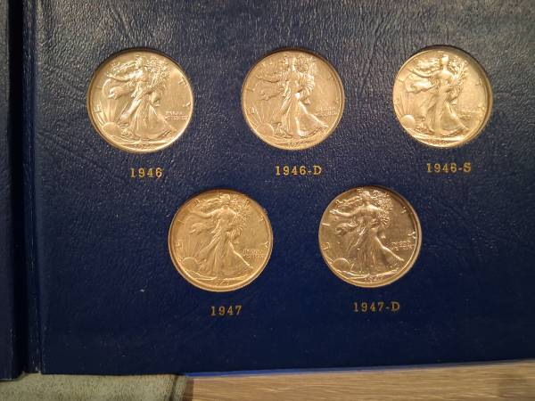 Selling from collection a complete Walking Liberty silver half dollar set from 1916 thru 1947 (65 coins) for $1750 The 1916-D is ANACS VG-8 1916-S is ICG G-4 and the 1921-P is ICG VG-8 Nicer above average set ranging from a few good to AU/BU. Selling remainder of my 50+ year collection of cents thru dollars.