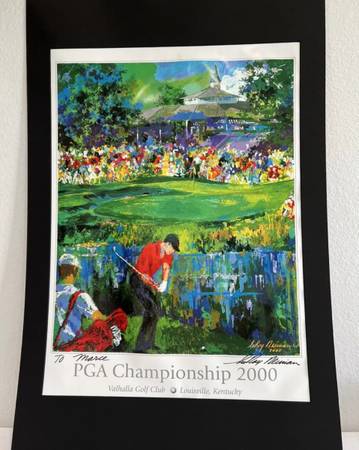 LeRoy Neiman 2000 PGA Championship Valhalla Club Kentucky signed golf Art Print. Gorgeous and vibrant piece measures 24x36 with matting, a little wavy as shown otherwise excellent condition....