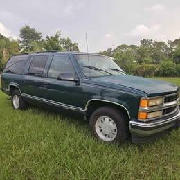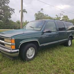 1996 Chevrolet Suburban LT. Emerald green with tan interior. This luxury sport utility comes equipped with a V8 350 5.7 liter time tested V8 engine, 100 k plus miles, alloy sport wheels, full 3 row seating, trailer hitch, roof rack, and all power options. Car is very tight and engine and transmission perform like new. If you would like to see it or have any questions please call or text 941-250-7500. Or for quickest response 941-253-9534. Or leave your number for a call back. Thanks so much . Brian.