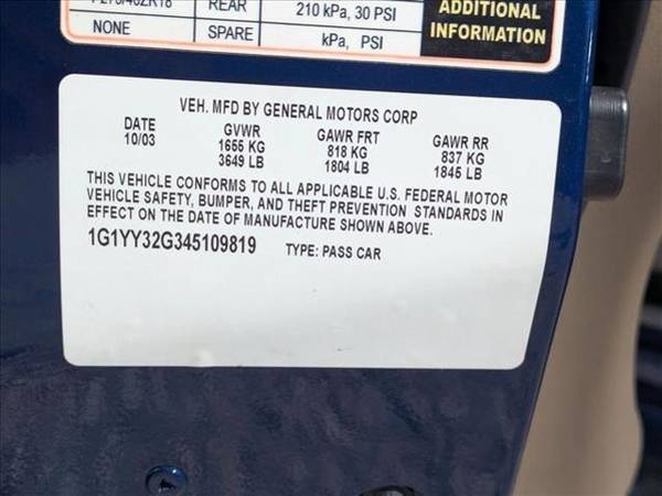 * Preferred Equipment Group * Wheels; High-Polished; 5-Spoke Aluminum; 17" X 8.5" (43.2 Cm X 21.6 Cm); Front And 18" X 9.5" (45.7 Cm X 24.1 Cm); Rear * Transmission; 6-Speed Manual * Leather Seats * Heads-Up Display * License Plate Bracket; Front * Convertible Soft Top * Axle; 3.42 Ratio; Limited Slip * Commemorative Edition * Emissions Override; Federal * Emissions; New York; Vermont; Massachusetts Or Maine State Requirements * Engine; 5.7L Ls1 V8 Sfi * Head-Up Display * Highwear Nuance Leather Seat Trim * Memory Package * Seats; Front Sport Bucket With Leather Seating Surfaces * Shale Commemorative Convertible Top Color * Solid Paint * Sound System; Etr AM/FM Stereo With CD Player * Steering Column; Power TelescopicThis vehicle includes a Money-Back Guarantee* and passed our precise inspection process. Best of all the price you see is the price you pay. No haggling. No back and forth. No pressure. And this price is so good it is guaranteed. *Money-Back Guarantee is valid for 5 days or 250 miles, whichever comes first. Subject to certain terms and conditions. See store for details. Some restrictions apply.