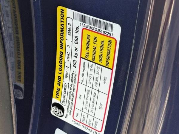 * Equipment Group 401A * Safe & Smart Package * Black Accent * Radio: Shaker Pro Audio System * Voice-Activated Touch-Screen Navigation System * Leather Seats * 3.55 Torsen Limited Slip Rear Axle * Navigation System * Keyless Start * Rear Spoiler * Cooled Front Seat(S) * Engine: 5.0L Ti-Vct V8 * Kona Blue Metallic * Midnight Blue W/Blue; Leather Bucket Seats W/Color Accents * Painted Black Roof * Transmission: 6-Speed ManualThis vehicle includes a Money-Back Guarantee* and passed our precise inspection process. Best of all the price you see is the price you pay. No haggling. No back and forth. No pressure. And this price is so good it is guaranteed. *Money-Back Guarantee is valid for 5 days or 250 miles, whichever comes first. Subject to certain terms and conditions. See store for details. Some restrictions apply.