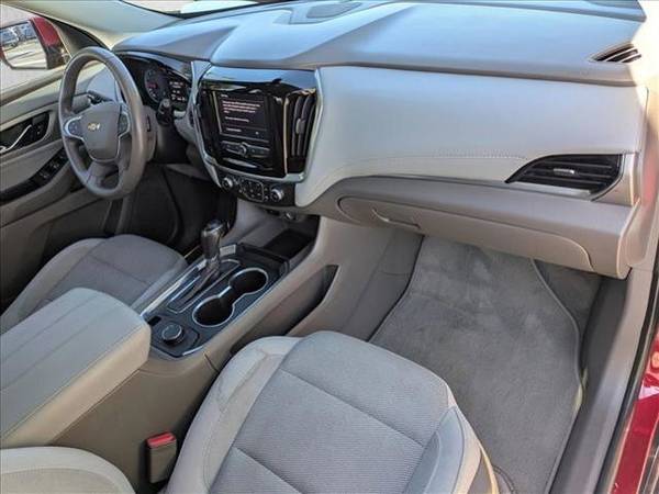 * 3rd Row Seat * Cajun Red Tintcoat * Lpo; Interior Protection Package * Audio System; Chevrolet Infotainment 3 System * Dark Atmosphere/Medium Ash Gray; Premium Cloth Seat Trim * Emissions; Federal Requirements * Engine; 3.6L V6; Sidi; Vvt * Lpo; All-Weather Cargo Mat * Lpo; All-Weather Floor Mats; First And Second Row * Lpo; All-Weather Floor Mats; Third Row * Lt Cloth Preferred Equipment Group * Seating; 7-Passenger (2-2-3 Seating Configuration) * Seats; Front Bucket * Tires; P255/65R18 All-Season Blackwall * Transmission; 9-Speed Automatic * Wheels; 18" (45.7 Cm) Bright Silver Painted AluminumThis vehicle includes a Money-Back Guarantee* and passed our precise inspection process. Best of all the price you see is the price you pay. No haggling. No back and forth. No pressure. And this price is so good it is guaranteed. *Money-Back Guarantee is valid for 5 days or 250 miles, whichever comes first. Subject to certain terms and conditions. See store for details. Some restrictions apply.This 2020 Chevrolet Traverse LT Cloth is offered to you for sale by Mercedes-Benz of Sarasota. This Chevrolet includes: ENGINE, 3.6L V6, SIDI, VVT V6 Cylinder Engine Gasoline Fuel *Note - For third party subscriptions or services, please contact the dealer for more information.* This versatile SUV is perfect for families or contractors with its oversized cargo area, exceptional horsepower and option upgrades. The Traverse LT Cloth has been lightly driven and there is little to no wear and tear on this vehicle. The care taken on this pre-owned vehicle is reflective of the 65,381mi put on this Chevrolet. Adjectives like impeccable, spotless, and immaculate can be used to describe how clean this Chevrolet Traverse LT Cloth is, causing it to feel more like a new vehicle than a pre-owned one.