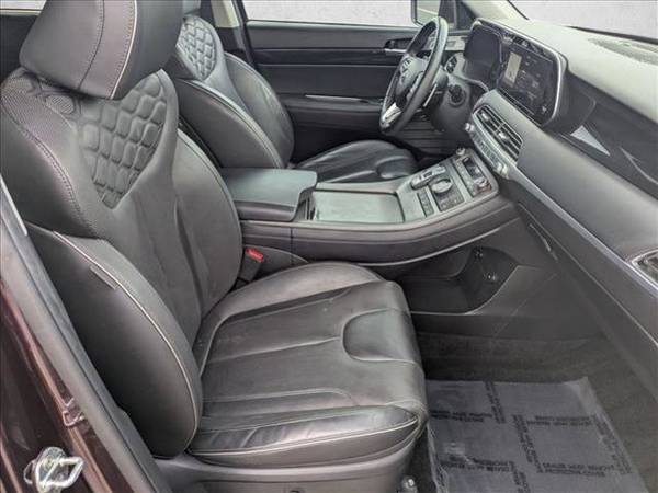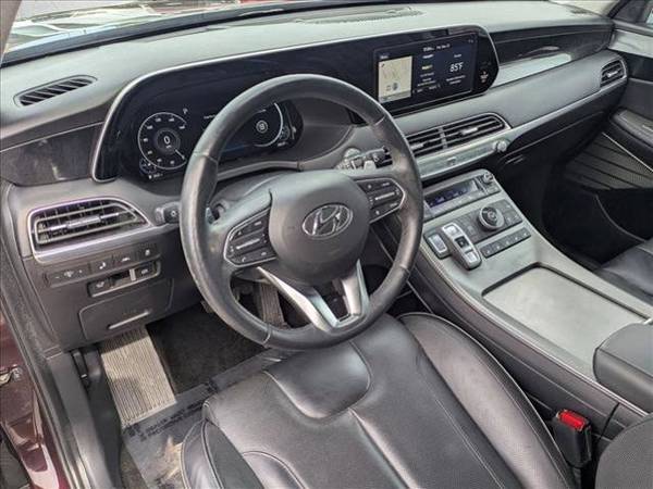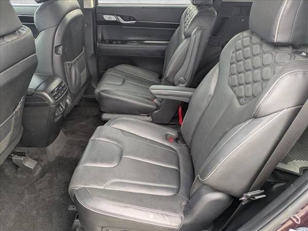 * Dual Moonroof * Leather Seats * Navigation System * 3rd Row Seat * Carpeted Floor Mats * Cargo Cover/Screen * Cargo Tray * Lane Keeping Assist * Keyless Start * Cargo Net * Rear Spoiler * Heads-Up Display * Cooled Front Seat(S) * Black; Premium Nappa Leather Seat Trim * Option Group 01 * Sierra Burgundy1 OWNER LOCAL TRADE IN WITH A PERFECT CARFAX!!AUTONATION CERTIFIED WITH WARRANTY!!This 2021 Hyundai Palisade Limited is proudly offered by AutoNation Ford Bradenton This SUV is a great example of beauty and brawn with classic styling and a workhorse power plant. You appreciate the finer things in life, the vehicle you drive should not be the exception. Style, performance, sophistication is in a class of its own with this stunning Hyundai Palisade Limited. The incredibly low mileage and painstaking upkeep on this Hyundai Palisade makes it a once-in-a-lifetime deal that won't last long! Call us today to reserve your test drive! Added comfort with contemporary style is the leather interior to heighten the quality and craftsmanship for the Hyundai Palisade Limited.