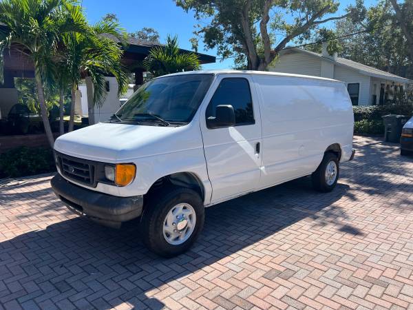 2006 Ford 250 cargo van runs and drives good ice cold AC good tires no rest clean Florida title fleet maintain service every 3000 miles has shelving in the back ready for work
