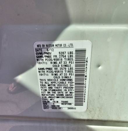 Selling a super clean great running and driving 2012 Nissan 🔥 Murano SV all wheel drive, only 112k, beautiful pearl white, with tan, fully equipped, ice cold ❄️ air, dual panel roof, backup camera, Nice set of matching tires, non-smoker, Been meticulously maintained and serviced, no accidents clean auto check ✔️, clean Carfax, everything works like it's supposed to runs and drives excellent, price to sell and very fair at $6450.00, please serious buyers only, no low ballers or scammers 😊