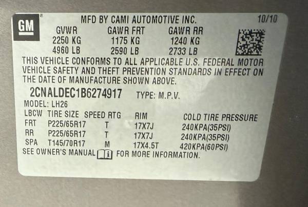 2011 Chevrolet Equinox LT Only 125K Miles! 2 OWNER Florida Truck! Back Up Camera, Bluetooth, ICE COLD A/C! 4 Great Tires, Turn key Ready to GO Non-smoker CLEAN TITLE Call/text Dany