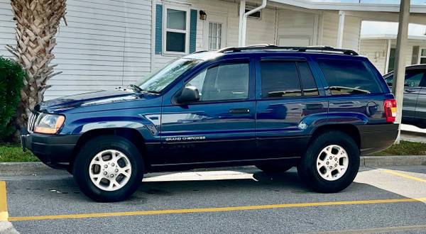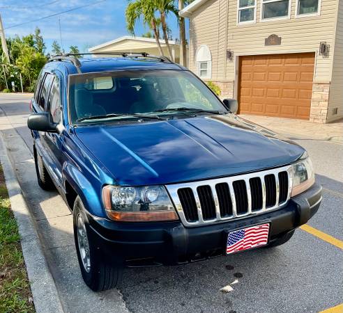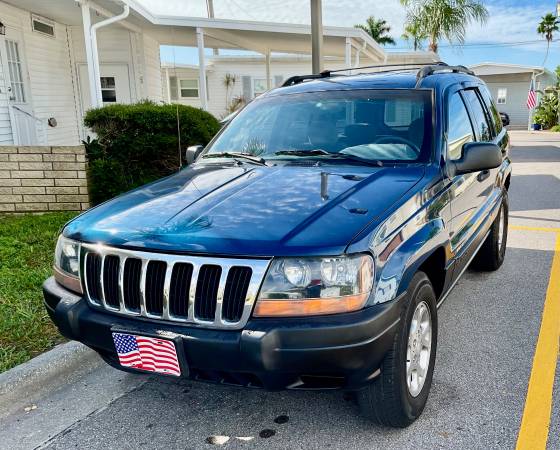 This is a brilliant, bright blue Jeep Grand Cherokee Laredo that runs and drives excellent. Strong 4.0, 6 cylinder engine. This is a Florida vehicle with zero rust. Only 131,000 miles. Ice cold air conditioning. Complete with power windows, power door locks, tilt wheel, cruise control, AM/ FM stereo system. Extra clean inside and out. Very good tires. This jeep has just been totally serviced, so it is ready to go. Smart and serious buyers. Please call me at show contact info