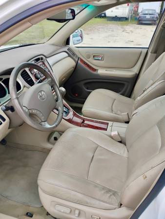 This 2005 Toyota Highlander Limited is a one owner vehicle. It has always lived in Florida, so there is no rust. Extremely well taken care of and serviced. Strong 3.3 L, V6 engine. Automatic transmission. Power windows and power door locks. Tilt wheel and cruise control. Super comfortable leather power seats. AM-FM-CD stereo system. Everything has been replaced and maintained properly. New timing belt, new water pump, new brakes and struts, new drive bolts, runs and drives great. Completely serviced and ready to go. These Toyota Highlanders can last forever, especially one that has been well cared for and maintained like this one. Cannot answer any emails or texts so please call me at show contact info