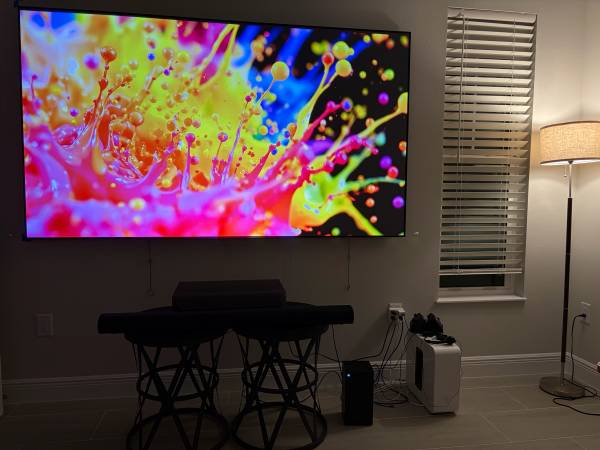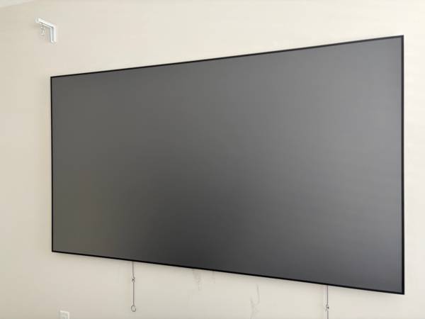 Screen is like new assembled and used for a couple of weeks. Reason for selling not enough room to seat far enough from such screen.