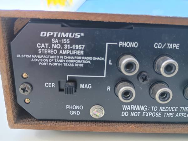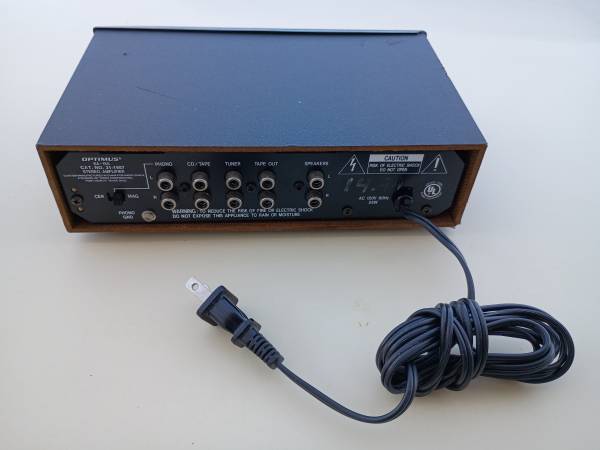 Vintage Optimus (Radio Shack / Realistic) stereo amp. Versatile unit for a starter or spare stereo component system to run a tuner, CD player, tape deck, etc., or if you need to hook up a turntable and your receiver doesn't have a phono pre-amp. Great condition, works well. Cash only, please.