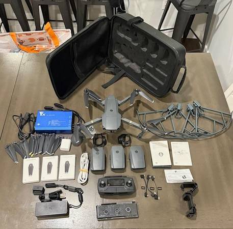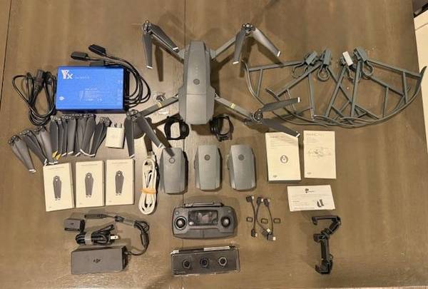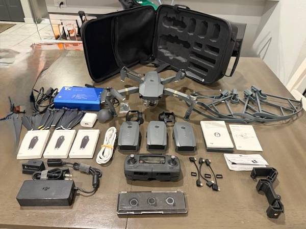 See pics - everything is included - Mavic, connectors, batteries with multi-charger, extra props, lenses, remote, prop guards, landing gear, too many to list.