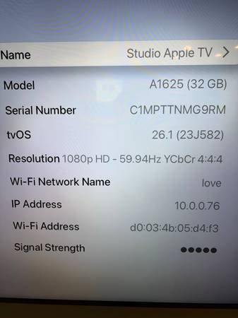 Apple TV 32GB Updated to TVOS 26 rarely used. Just sign any and ready to use. Works Great in Pristine Condition.