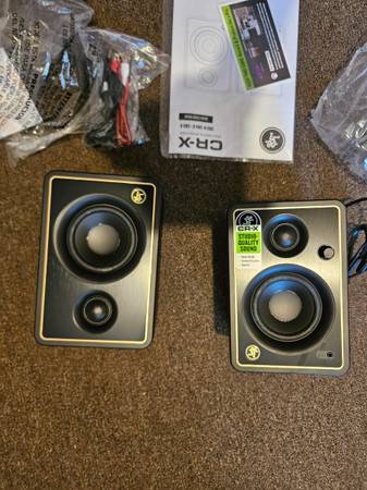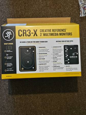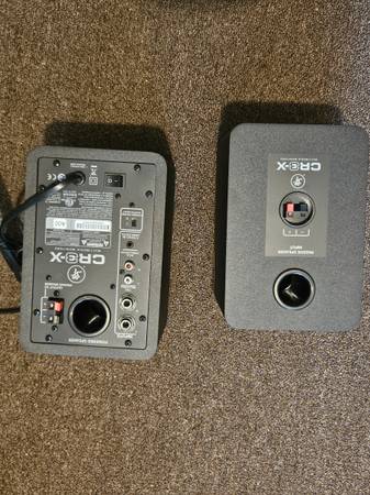 The Mackie CR3.5 Creative Reference studio monitors deliver professional-quality sound with versatile tone-shaping controls. Designed for discerning musicians, these powered studio monitors provide a transparent listening experience for mixing and mastering. A selectable tone knob lets you adjust the sound signature, starting with a flat studio reference then gradually adding more low end and high-end sparkle for casual enjoyment. With multiple inputs and switchable orientation modes, the CR3.5 monitors give you a powerful, balanced sound wherever you set them up. Whether composing, recording or just rocking out, the Mackie CR3.5 studio monitors may be the only powered speakers you'll ever need. All cables, manual and original box, buy them and enjoy them!