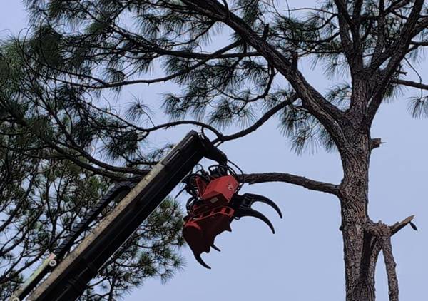 We remove large trees for small prices. How? Super easy, fast, and safe with tree removal truck. Grabs trees, cuts them with built in chainsaw, puts them through the chipper.