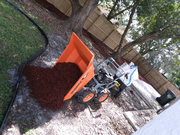 A 7 hp gas Powered 4 Wheel Drive Wheelbarrow is available for hire. 30 inches wide yet capable of moving up to 660 lbs of material. Can move Bags / Piles of Rock, Soil, Mulch, Sand, Sod and more efficiently.