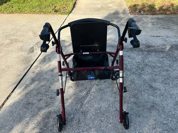 MEDLINE FOLDING WALKER THE SEAT LIFTS UP CONVENIENTLY SO THINGS CAN BE ACCESSIBLE WORKS/ROLLS VERY WELL THANK YOU VERY MUCH!