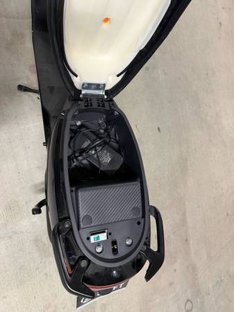 Extras: Underseat locking storage and more open storage in cup holder, rear pillion seat, full lighting including turn signals and high/low beams, mirrors, USB charger for phones, alarm with wireless key fob control, side and center stand