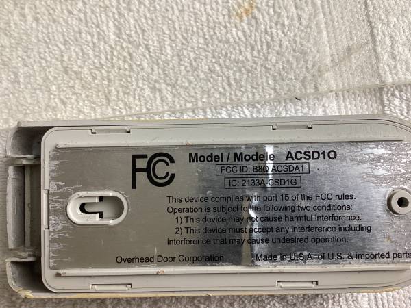 Chamberlain brand garage door opener wireless keypad or remote transmitter. Model ACSD10. See pictures for details. Asking $12 Car transmitter remote model number 3BTM-0372C Asking $12 Transmitter...
