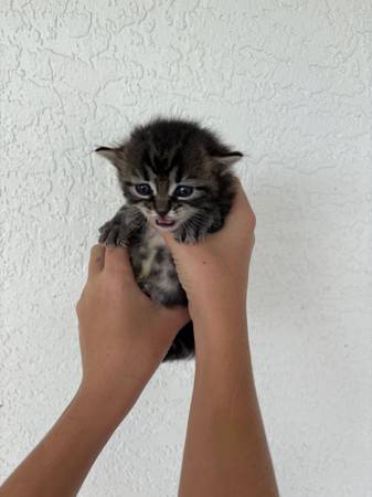 This is a male kitten, he’s 3weeks old. Available to go home around November 2nd or 3rd. He will not have any shots, I really suggest waiting for a few months till he develops more. He’s not fixed. Again, we suggest waiting till 6 months.