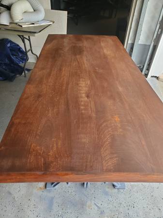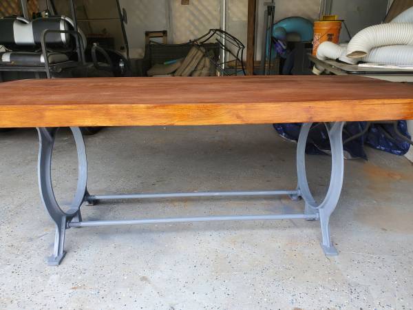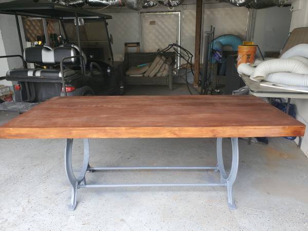 Industrial style dining table. Very sturdy and heavy duty. Butcher block top and heavy duty iron legs. Can also be used as a workbench, tool bench, storage table, etc...