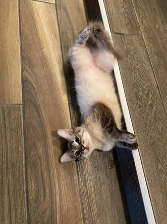 Not fixed Female Potty trained Indoor only Good with cats NO DOGS Almost up to date on shots needs one more visit. Needs flea meds