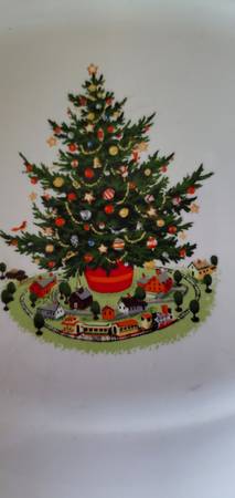 Festive Christmas tree with village scene illustration Set of two. 8" serving dishes oven and microwave safe $10. 00