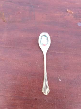 Neiman Marcus, 24 K gold plated vintage, made in Japan, hand painted, condiment/dessert spoon holiday set. This is a lovely set for a hostess gift or for yourself. Never used, in original box and it has very vibrant holiday colors. Each spoon has a different design depicting a tree, candle, wreath and bell. Each spoon measures 5" long. Bright, shiny and perfect for the Holidays. $20. For more information, please contact me.
