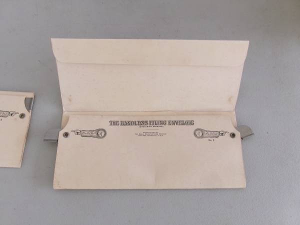 *2 - Off white, "The Bandless Filing Envelope" made by The Smead Manufacturing Company, Hastings, Minnesota, U.S. A. Both envelopes also have "In Court Of County Judge Hardee County Florida" on the front. Great pieces of vintage Florida memorabilia in like new condition. The envelope paper is in great condition with no rips, tears or writing on them. The envelope opens up to allow important papers put inside and then there are two metal bands on each side of the envelopes that swing up and down to hold papers inside and the envelope closed. Distributed by the Bowes Supply Co, Plant City, Florida - Smead's F58792.