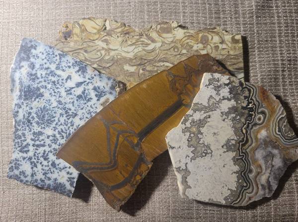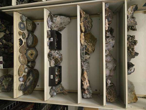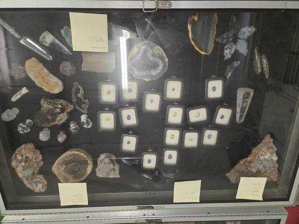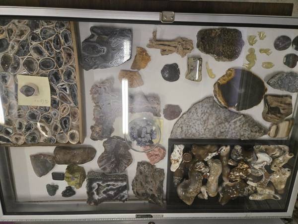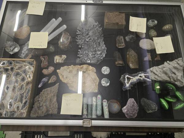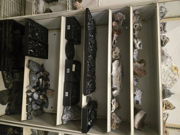 Enormous private collection of rocks/minerals/gems/cabochons/slabs for display, re-sale, jewelry making or collecting. Owner passed away before being able to build the rock shop he always dreamed of. Very unique pieces (not what you would see in a regular rock or crystal shop) collected over decades of travel and adventure. Tons of rough rock for slabbing and jewelry making such as psilomelane, jades, red horn coral, dino bone, amatrine, fossilized palm and cycad, snowflake obsidian,
