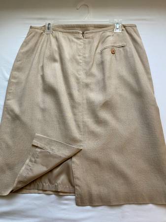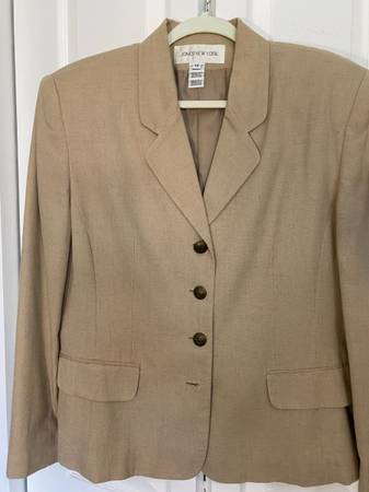 Jones of New York, 3-piece Summer Suit, 15% linen, 85% rayon, size 14. Stored hanging in closet. Have cancer, lost too much weight to wear it.