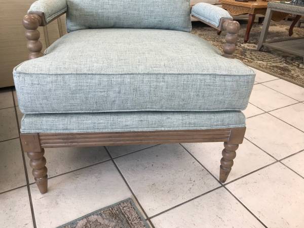 Ethan Allen Coastal Pole Chair - Simply Stunning Custom made chair accented with Sea glass fabric. This is a Spindle back chair by Ethan Allen. This sells for over 2000.00 our price 1595.00 Like brand new!!!