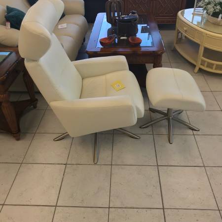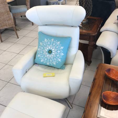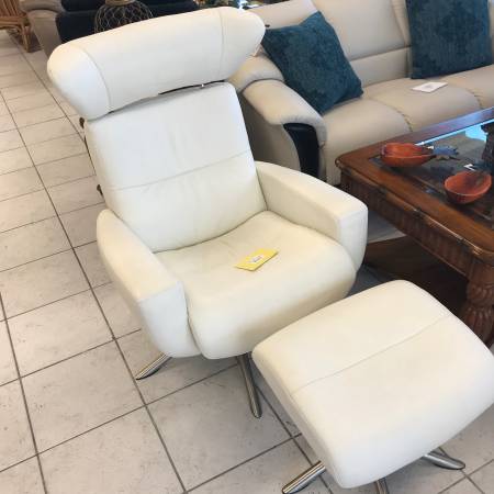 White Leather Recliner and Ottoman -Gorgeous White Leather Recliner with head rest and ottoman. This is a stressless type chair
