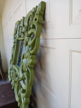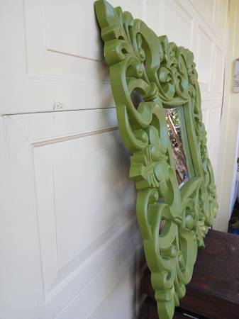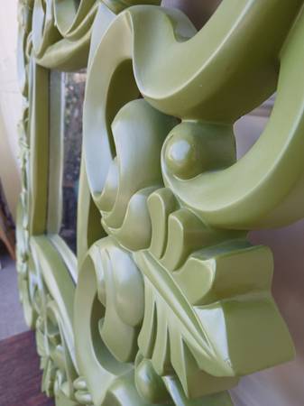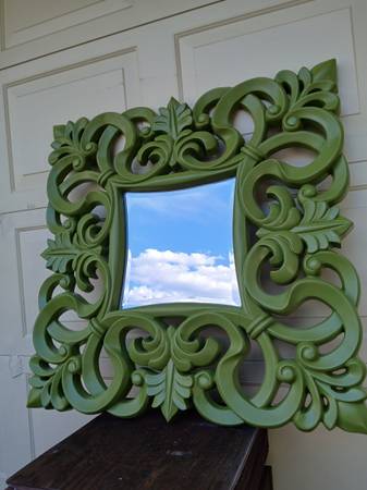 Beautiful square wall mirror in a great detailed design in an attractive avocado/olive green color in top condition
