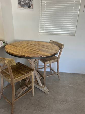 Pickett furniture 42 inch round solid acacia wood table with 4 chairs. Counter height. Excellent condition -just too large for my space.
