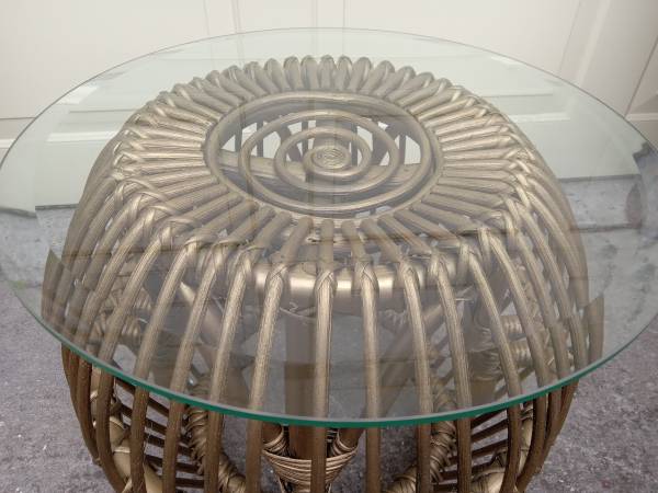 Gold Franco Albini MCM Rattan Table with beveled thick glass top all in excellent condition, an eye catching vintage table for anywhere