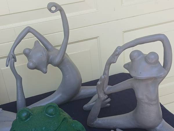 6. Relaxed Yoga Frog Garden Sculpture - aluminum 17" w, $175 new, now $65