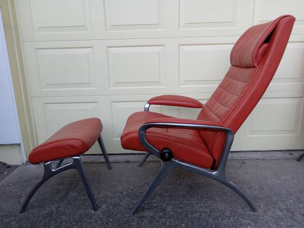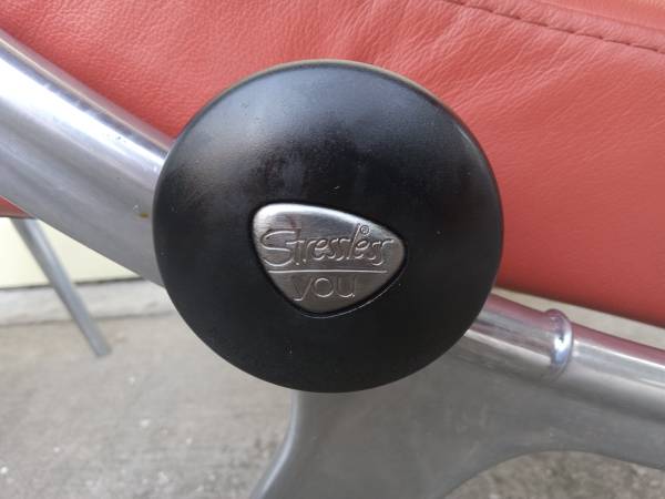 The Stressless YOU John has an eye catching aluminum frame and adjustable neck pillow, fits in perfectly with any styling from Mid Century Modern to Art Deco to Contemporary, great mcm color leather