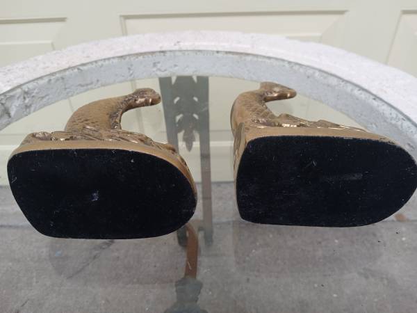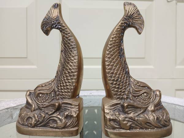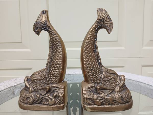 Rare 1960's Intricate Brass Dolphin / Koi Fish Bookends / Figural statue by Andrea by Sadek made in Korea, excellent condition