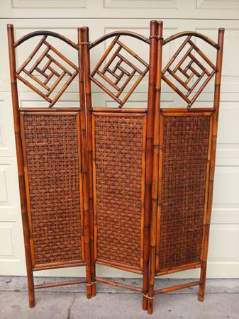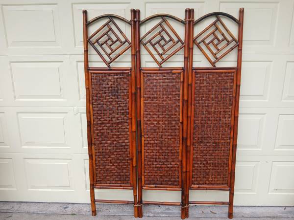 Lovely rattan/bamboo 3 panel screen, room divider, wall art or privacy screen in top condition