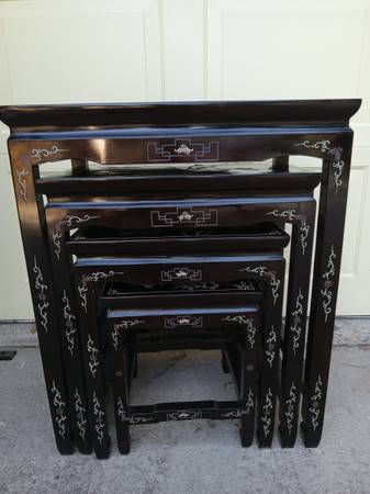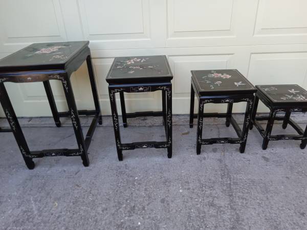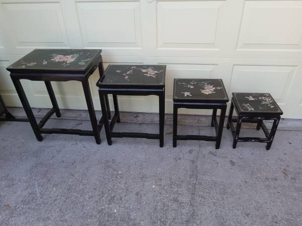 Beautiful Antique Chinoiserie Lacquerware Nesting Tables - Set of 4 in top condition