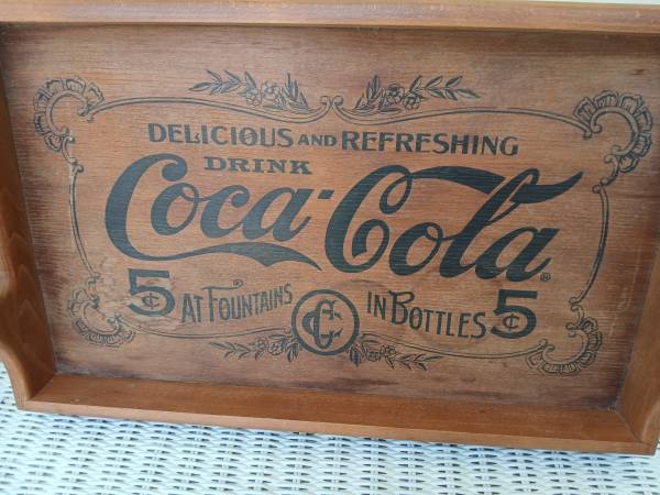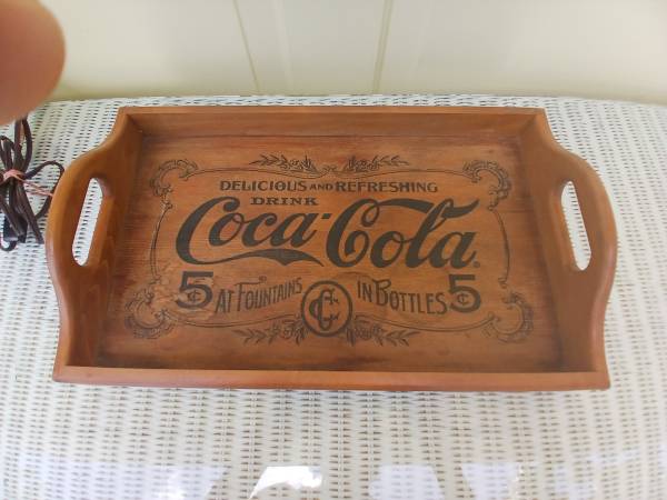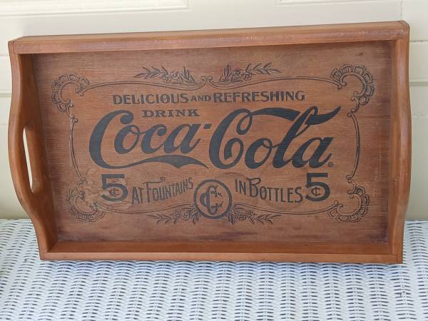 This vintage Coca Cola serving tray is a must-have for any collector. Made of wood and featuring the iconic brand logo, this tray is a piece of soda history, original 1993 creation date, label on back .The tray also features handles for easy carrying and serving. Perfect for display or use, measures 18" x 11"