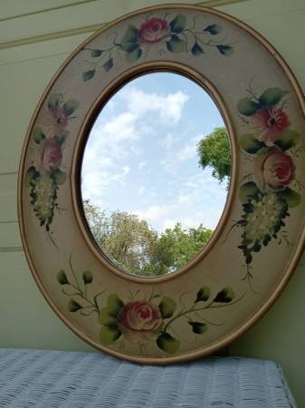 Very pretty oval vintage wall mirror, gold frame and flowers all round, a gorgeous mirror for anywhere from bedroom to bathroom to hall