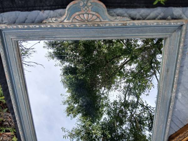 2. Vintage Large Gold 8 sided detailed gold wood mirror 26" wide, 38" high - $120