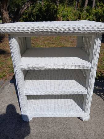 Very nice white natural wicker nightstand, end table, side table or accent table with lots of useful storage having 4 levels