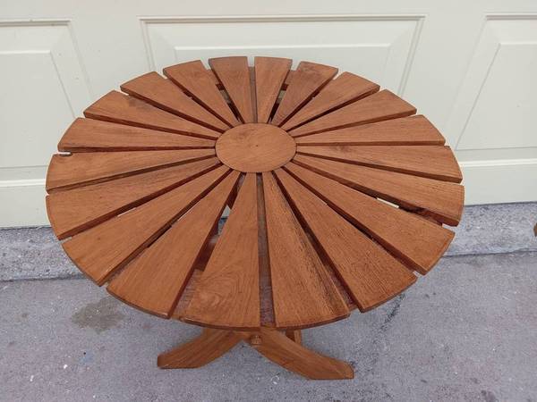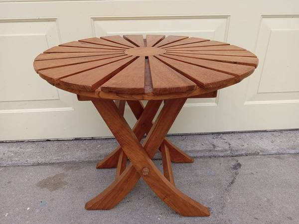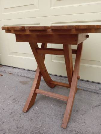 Great looking acacia wood end table or small coffee table with spiral design top in excellent condition, no marks or wear for indoors or outdoors
