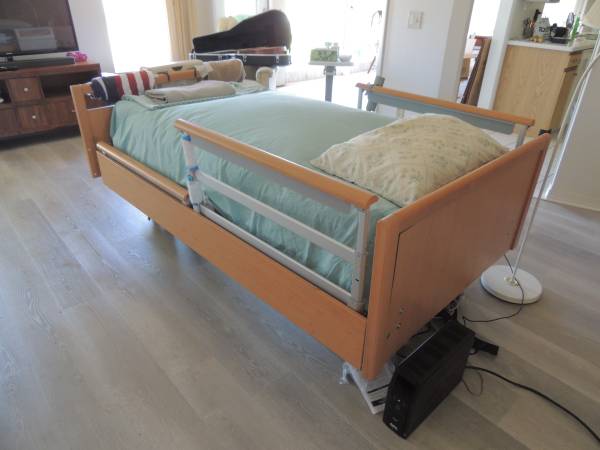 Includes "Linet Sentida 3 Long-Term Care Hospital Bed." Manufacturer's current retail price is $5,221.99 USD. Listing also includes the Over Bed Table shown in photos.