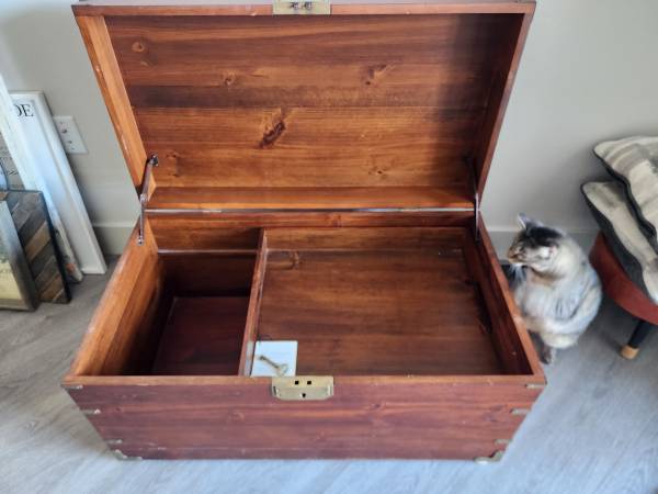 Trunk is in amazing condition! We just moved back to Florida from Colorado and as much as we love the trunk, it just no longer fits with our decor. Lift out tray has handles and can be slid from side to side to access the full bottom area. Comes with the original tag and the working key. $145 o.b.o. Thanks for looking and have a great day!