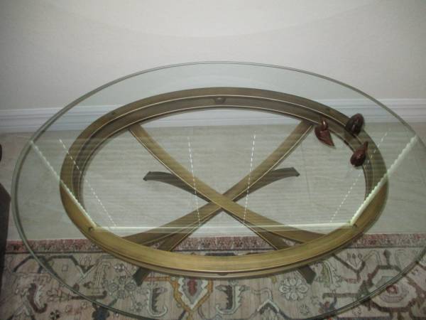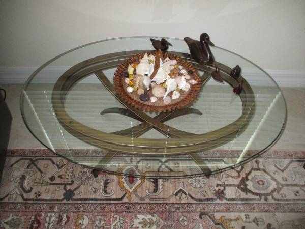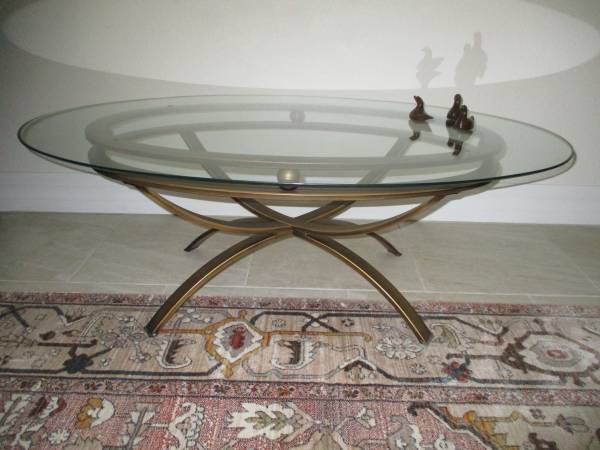 A really nice oval-shaped, glass-top coffee table in excellent condition .. no scratches or chips.