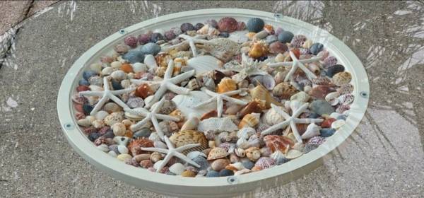 Glass Table with Coastal Florida Shell Décor – 48" Round